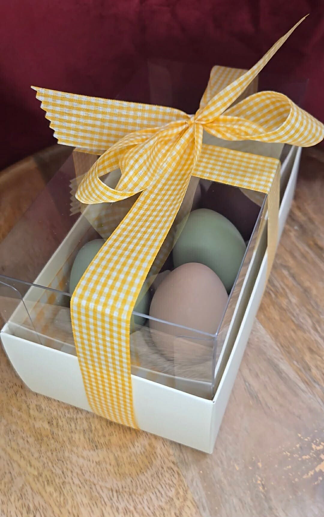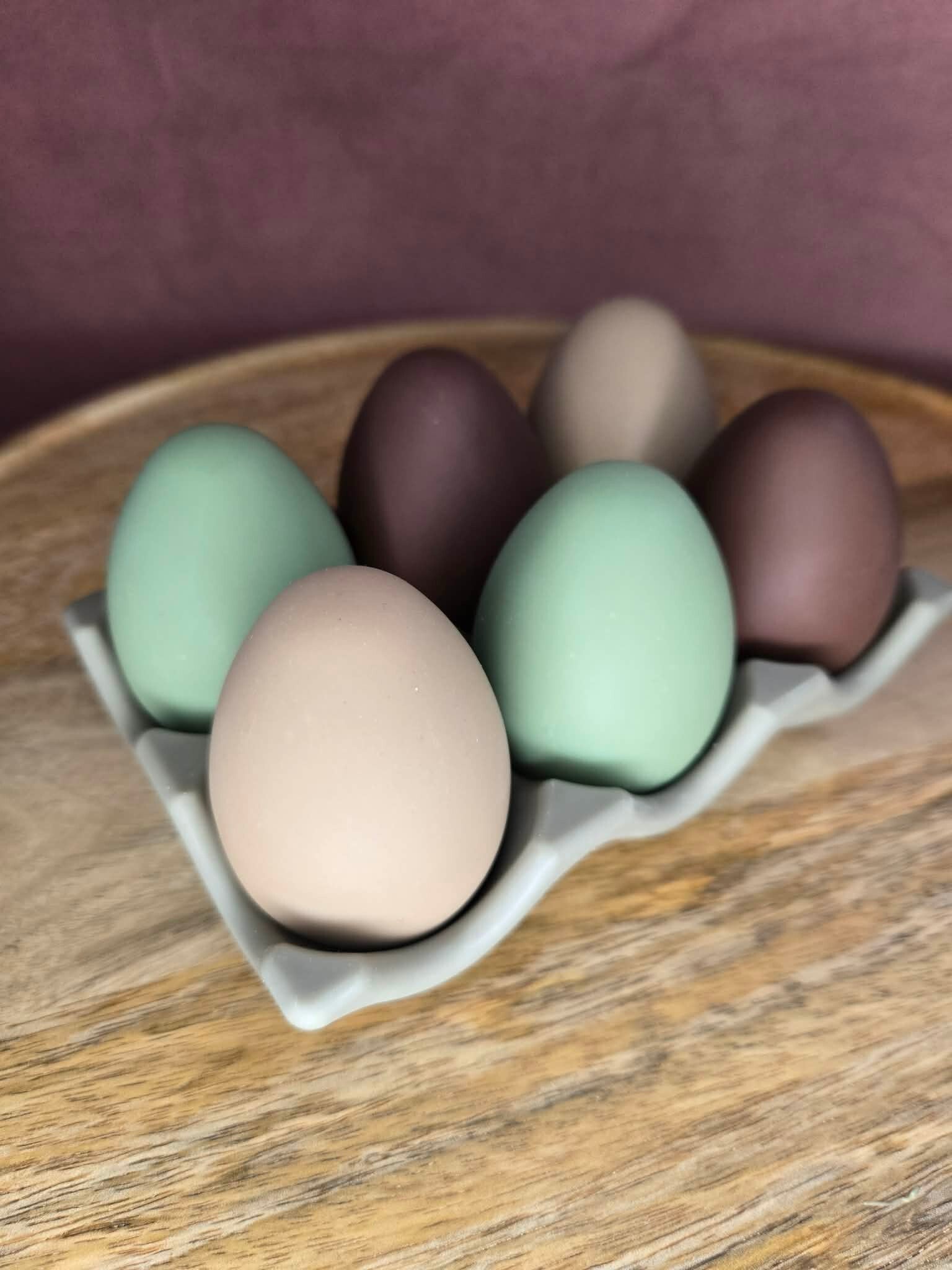 Comme ces merveilleuses boîtes d’ œufs garnis , inspirés des vrais œufs de ses poulettes.